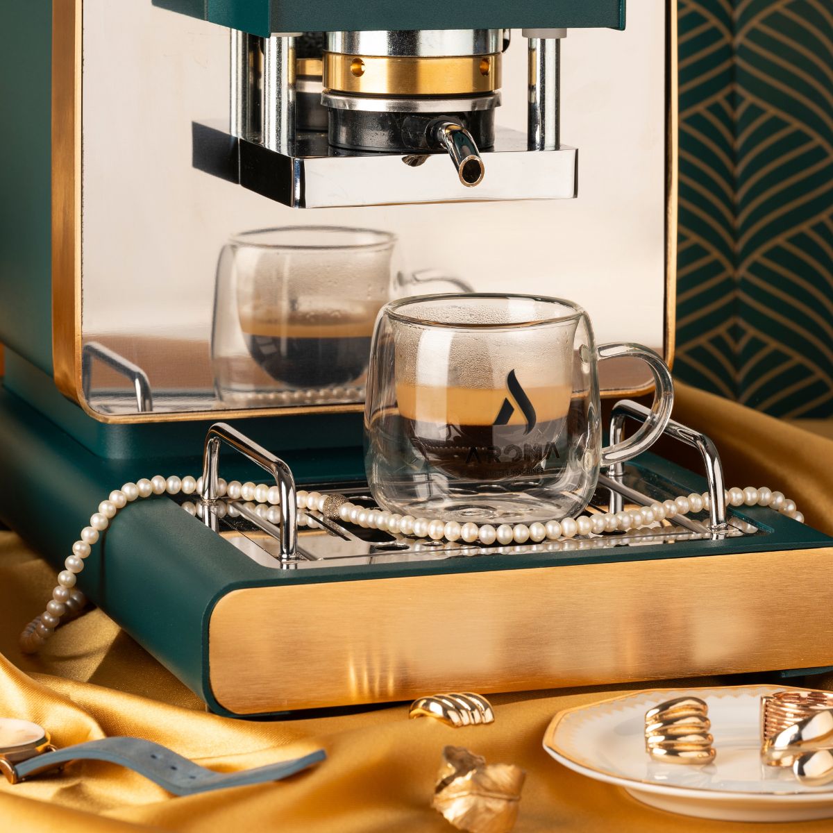 7Gr. allows you to buy pod coffee machines online for all tastes and budgets. Starting with the AROMA PLUS BASIC model, the smallest pod espresso machine on the market. Only 25 cm high and weighing just 2.5 kg, it allows for perfect extraction of the pod while ensuring good energy savings. This model – available in various colors – also guarantees excellent hygiene: the tank is made of glass and the entire lower group can be disassembled and cleaned.