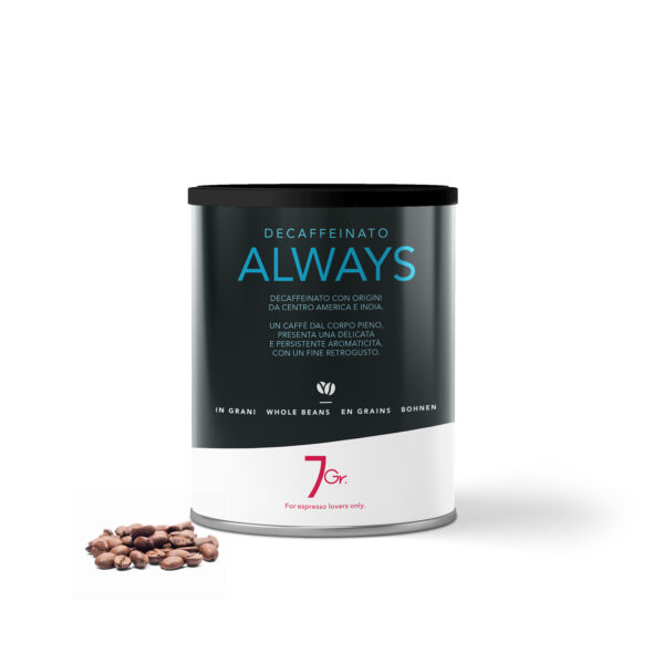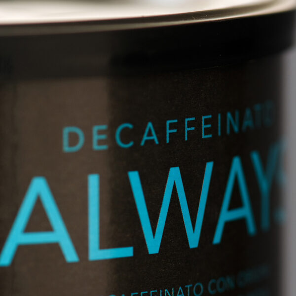 Our Always blend is decaffeinated using a natural method that preserves the aromatic integrity of the coffee, ensuring a rich and satisfying sensory experience.