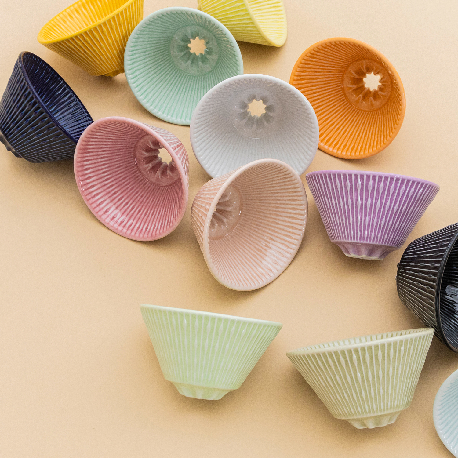 Flat-bed design with intelligent embossing: internal grooves create small spaces between paper and porcelain, promoting faster water flow and intense, sweet extraction.