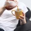 Durable porcelain mug with a modern design, thick walls, and a rounded interior to enhance the coffee’s flavor.