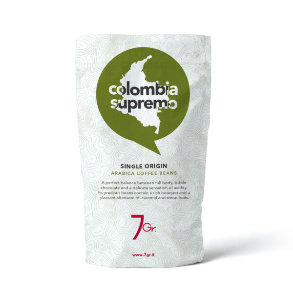 La Colombia è il primo produttore al mondo di caffè Arabica lavati e i suoi chicchi sono rinomati per la loro alta qualità.Le piante crescono in altura tra i 1500 e i 1900 metri e il terreno di natura vulcanica fornisce loro un elevato nutrimento organico. Il raccolto si svolge da Ottobre a Febbraio. Nella sua qualità Supremo, rappresenta una delle componenti più pregiate, con il suo perfetto equilibrio e il suo gusto soave che lascia un inconfondibile aroma di cioccolato e caramello arricchito da note di pesca e prugna leggermente agrumate.